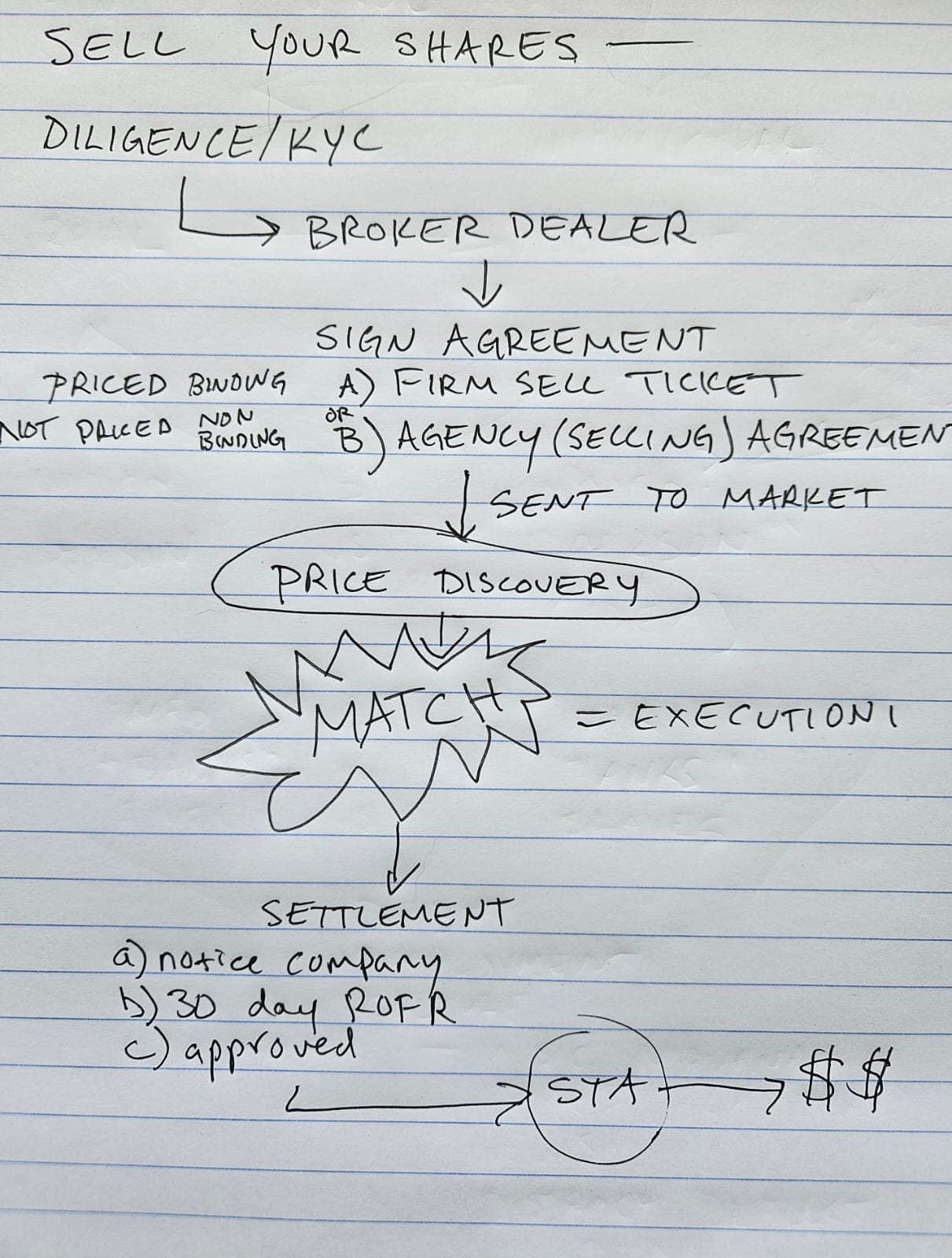 Whether you are an early investor, employee, or other type of shareholder - Venture Capital Cross can help sell your shares. Private Markets are unlike public markets in many ways, but the most significant difference is there is no guaranteed liquidity. The steps are to collect your KYC including Photo ID, Proof of Shares, and obtain an authorization from you to sell your shares in the form of a Firm Offer Ticket or Selling Agreement (Agency Agreement). All securities are processed by R.F. Lafferty & Co. Inc. - counterparties are given the choice to complete the KYC form, or to open a brokerage account (the information required is similar).